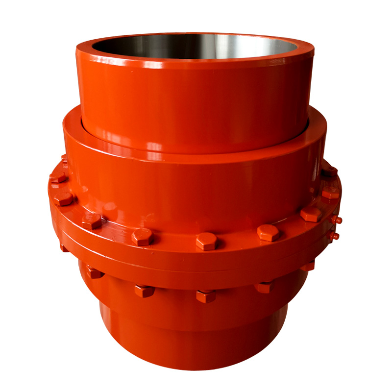 鼓形齒式聯(lián)軸器齒間距小,允許相對(duì)徑向位移小,結(jié)構(gòu)緊湊,轉(zhuǎn)動(dòng)慣量小,適用于公稱轉(zhuǎn)400~4500000N·m,聯(lián)接水平兩同軸線軸系傳動(dòng)。