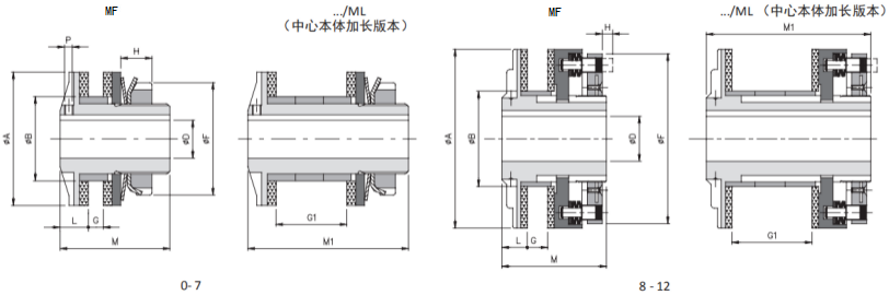 MF-G:同軸連接,帶彈性聯軸器,補償范圍大