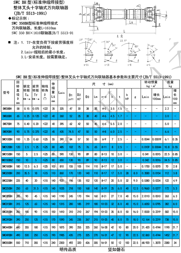 1.具有較大的角度補償能力,SWC型軸線折角可達(dá)15°~25°,SWP型可達(dá)10°。