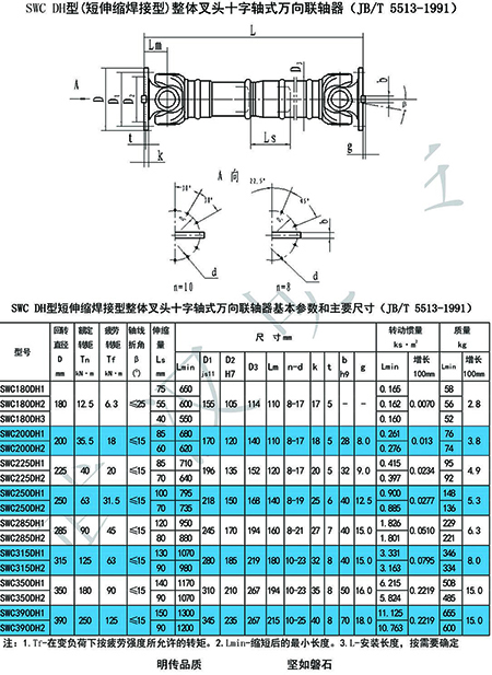 1.具有較大的角度補償能力,SWC型軸線折角可達15°~25°,SWP型可達10°。
