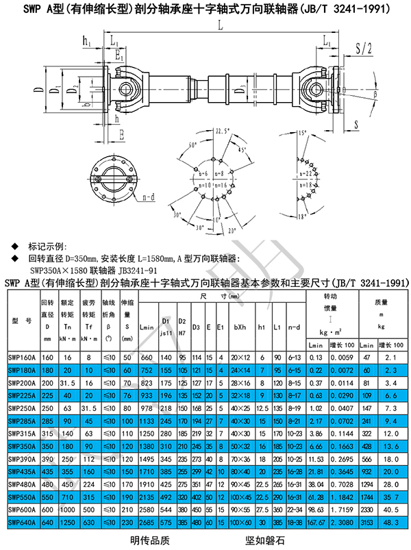1.具有較大的角度補償能力,SWC型軸線折角可達15°~25°,SWP型可達10°。