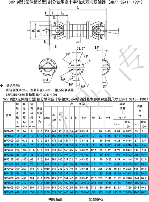 SWC型(整體叉頭)、SWP(剖分軸承座)萬向聯軸器的主要特點: