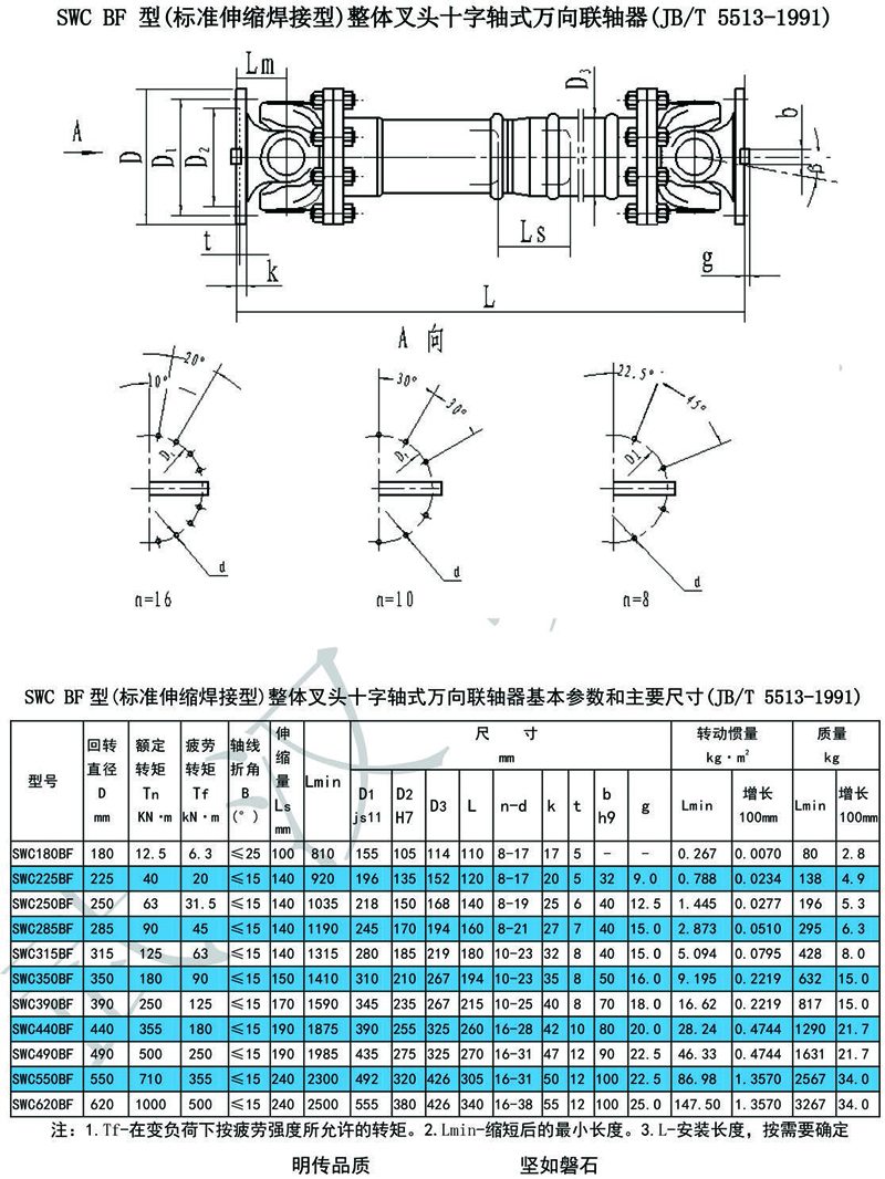 1.具有較大的角度補償能力,SWC型軸線折角可達15°~25°,SWP型可達10°。