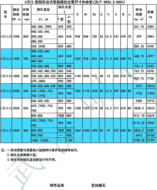 GIICL型基本型(窄型)鼓形齒式聯軸器齒間距小,允許相對徑向位移小,結構緊湊,轉動慣量小,適用于公稱轉矩400~4500000N·m,聯接水平兩同軸線軸系傳動。