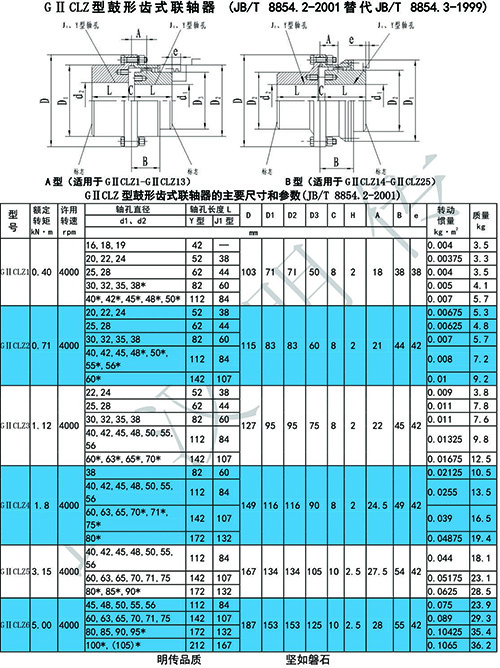 GIICLZ型接中間軸(窄型)鼓形齒式聯軸器齒間距小,允許相對徑向位移小,結構緊湊,轉動慣量小,適用于公稱轉矩400~4500000N·m,聯接水平兩同軸線軸系傳動。